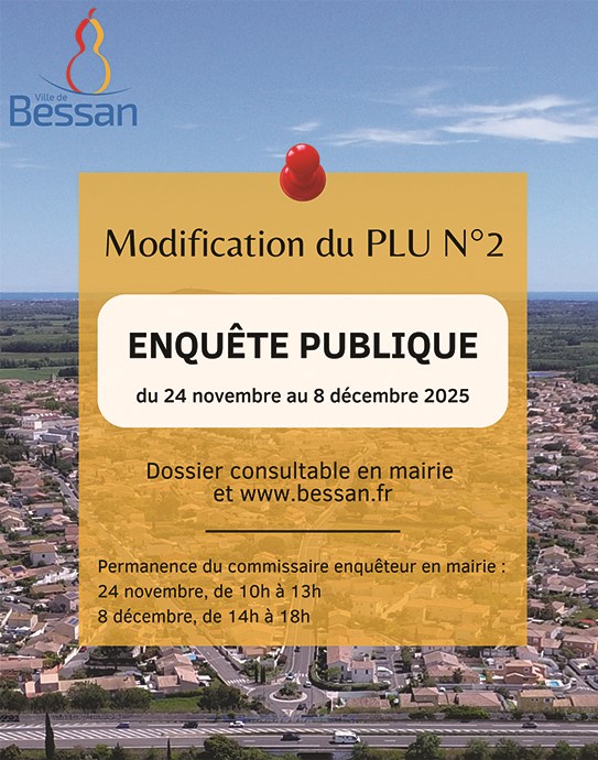 Toute information complémentaire relative à cette modification du plan local d’urbanisme peut être demandée auprès de Vincent Ricard, directeur général des services de la ville ou de Véronique Dangla, responsable du service urbanisme, en contactant respectivement le 04 67 00 81 87 ou 04 67 00 81 80. Toutes les pièces de ce dossier sont consultables sur le site : www.bessan.fr.